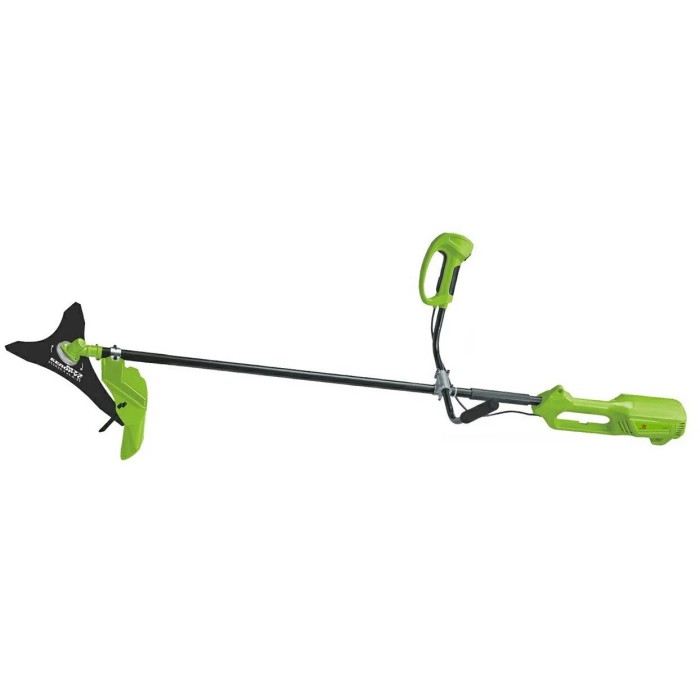 Електрокоса Білорус КГ-3100М – модель розрахована на півпрофесійне застосування в умовах інтенсивної експлуатації. Цим електротримером можна працювати як з ліскою, так і зі сталевим ножем і може застосовуватися як в приватних господарствах так і в комунальних підприємствах. Високопродуктивний електричний силовий агрегат з піковою потужністю 3100 Вт відрізняється стабільною роботою навіть при інтенсивній експлуатації і відсутністю викидів. Верхнє поздовжнє розташування силового агрегату гарантує відмінну маневреність пристрою. Ріжучий елемент моделі представлений високоміцної волосінню і сталевим 3-х лопатевим ножем з унікальною заточкою, які з легкістю зрізають високу і жорстку траву. Подача ліски відбувається в напівавтоматичному режимі, що дуже зручно. Робоча ширина тримера досягає 420 мм. Завдяки цьому Ви зможете обробити максимально швидко середні і великі за площею території. Тример електричний Білорус КГ-3100М має високоякісний 9 шлицевой не розбірний вал. Завдяки цьому зменшується вібрація і навантаження на двигун і сприяє більш комфортній роботі оператора.