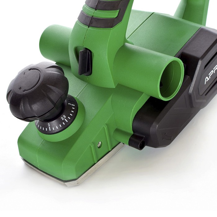 Електрорубанок APRO P1100 має можливість регулювання глибини обробки, що дозволяє налаштувати інструмент під необхідні вимоги. Він також оснащений ергономічною ручкою з м'яким покриттям, яка забезпечує комфортну роботу протягом тривалого часу.
