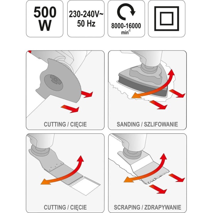 Многофункциональный инструмент (реноватор) YATO YT-82223, 500 Вт, 16000 об/мин, насадки, кейс