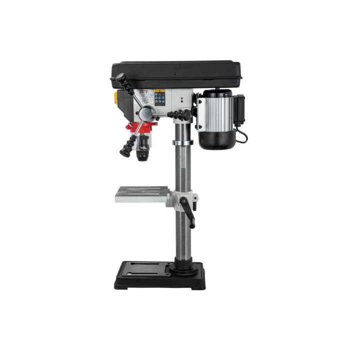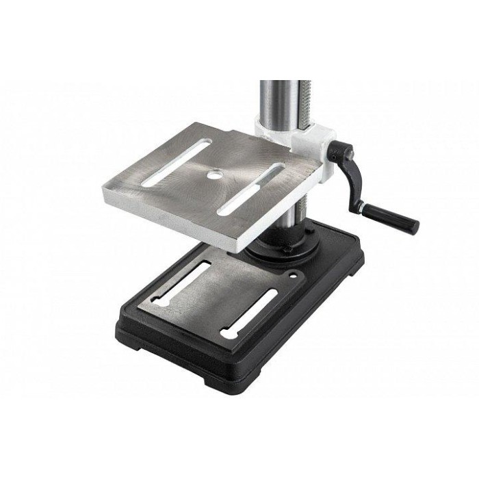 Рукоятка привода пеноли оборудована лимбом для контроля подачи и имеет встроенный ограничитель хода (глубины сверления). В штатный комплект поставки входят быстрозажимной патрон и станочные давления Wilton, для крепления которых предусмотрены пазы на столе и на опорной основе станка.